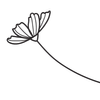 A minimalist black line drawing of a flower with a long curved stem and large petals.